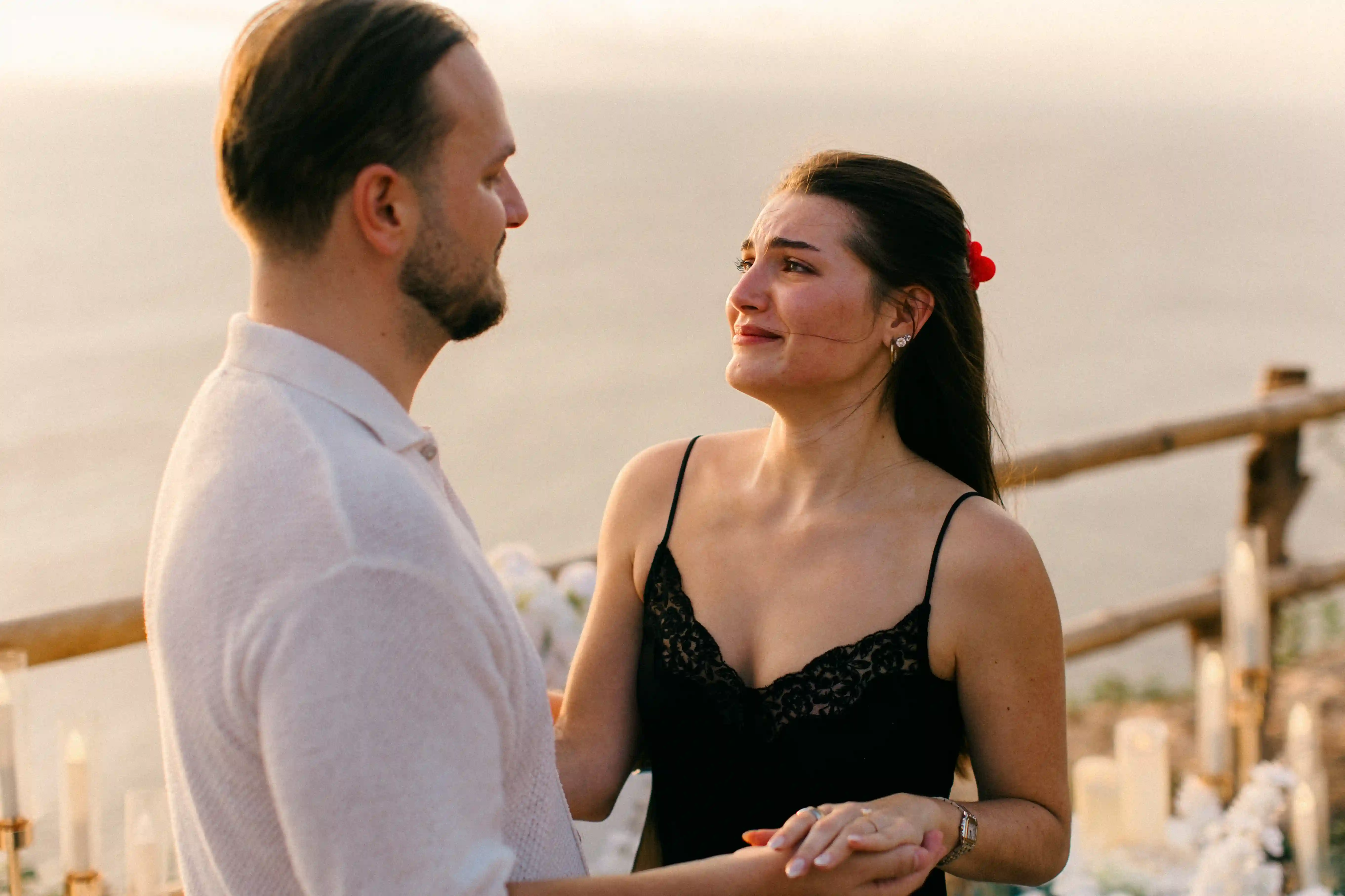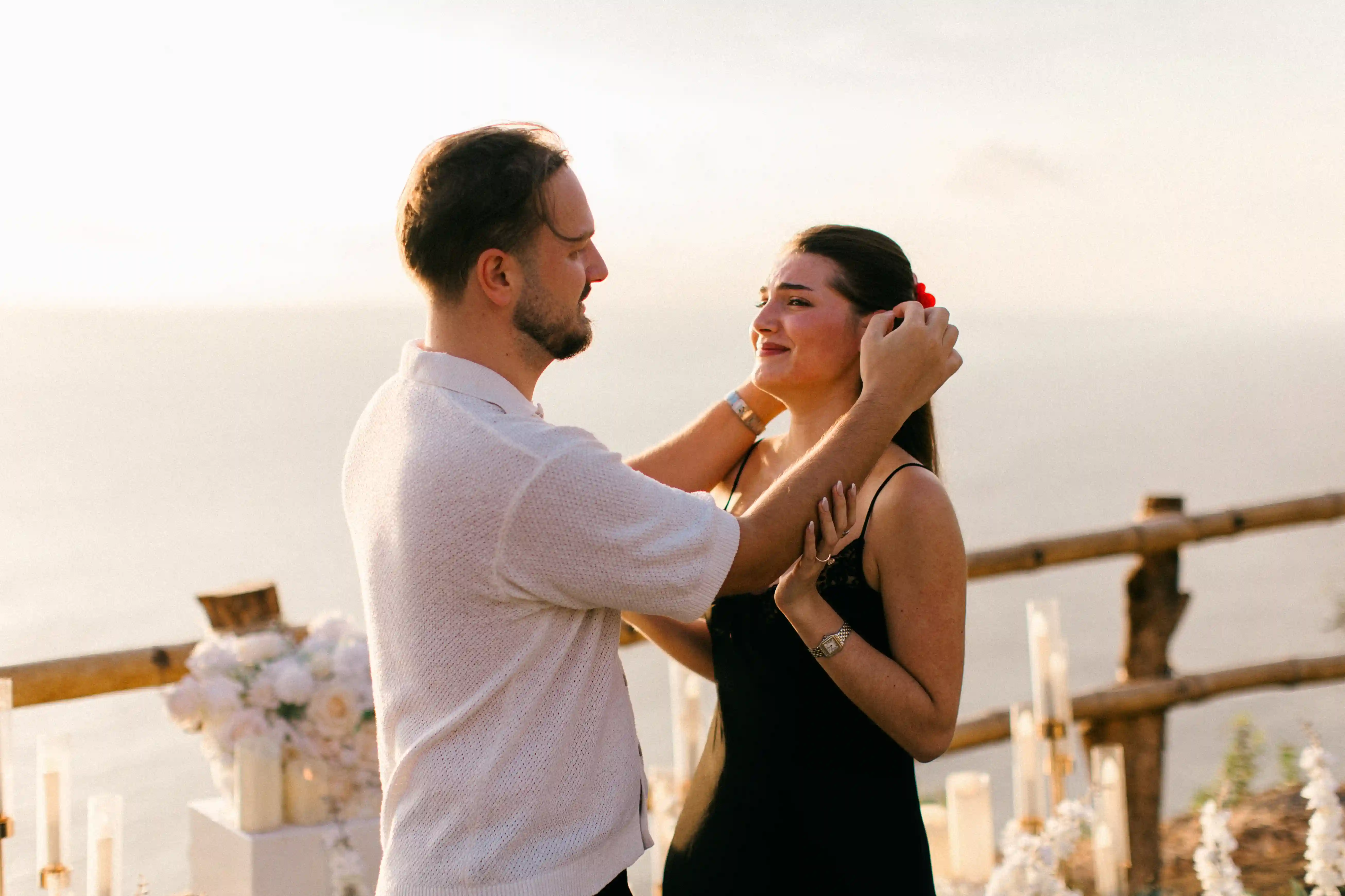 He wasn’t looking for a fairytale setup or an over-the-top scene. He wanted something clean, modern, and calm. A setup that matched them: blue and white tones, open space, ocean, sky, and nothing that felt forced or cheesy. Just a moment that made sense.