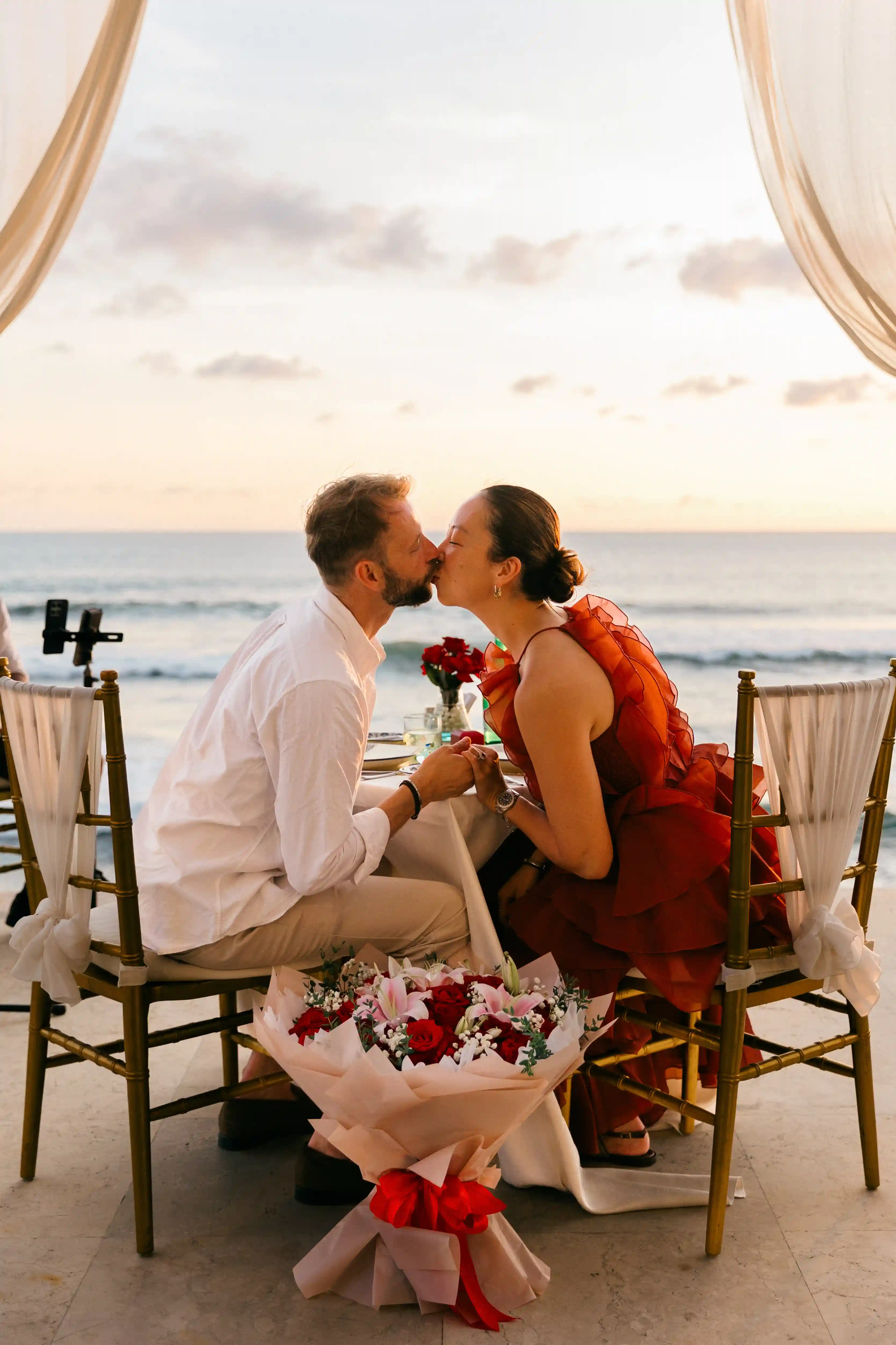 Maria and Andre traveled to Bali to enjoy a romantic escape by the ocean. Wanting to make this trip truly unforgettable, Andre planned a private proposal that would feel elegant, emotional, and perfectly timed with Bali’s breathtaking sunset. His goal was to create a moment that felt natural, intimate, and deeply romantic.